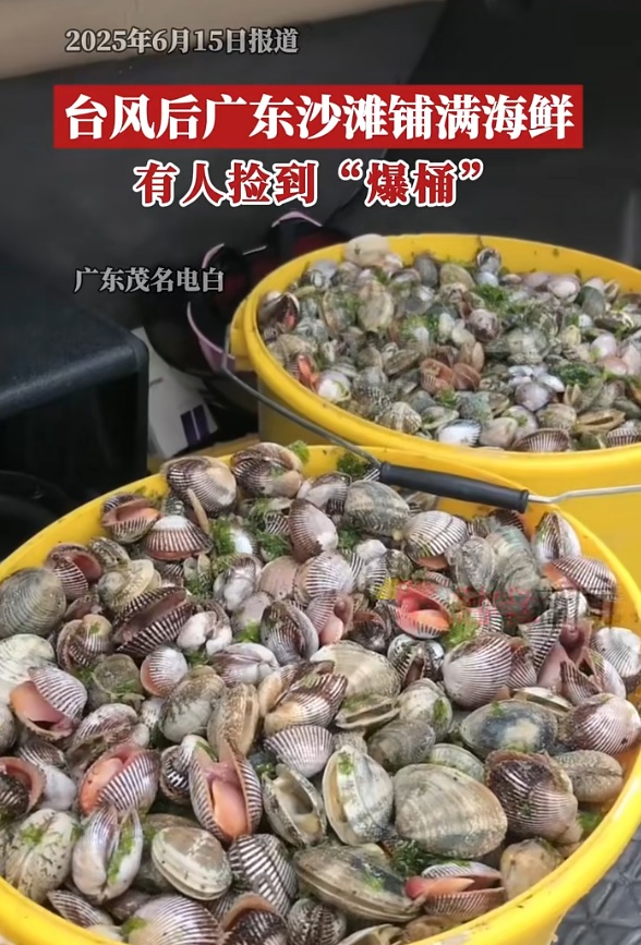 广东茂名等地海域,受到台风“蝴蝶”的潮汐影响,沙滩上也冲上来不少生蚝等海产品,吸引周围村民组团赶海,直呼分分钟“爆桶”。